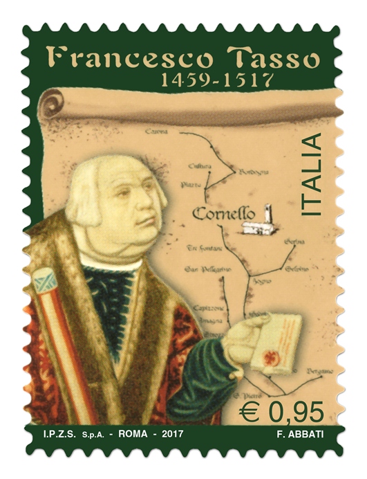 Il Comune di Camerata Cornello e il Museo dei Tasso e della Storia postale, sabato 11 novembre 2017, dalle ore 10.00, nel borgo di Cornello dei Tasso (Camerata Cornello, Bg), presentano il francobollo commemorativo dedicato a Francesco Tasso.