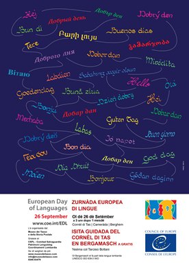 Sabato 26 settembre 2015, in occasione della Giornata Europea delle Lingue, alle ore 15.00, il Museo dei Tasso e della Storia postale (via Cornello, Camerata Cornello –Bg) organizza una visita guidata gratuita in dialetto bergamasco al borgo di Cornello, alla Chiesa dei Santi Cornelio e Cipriano e al Museo.