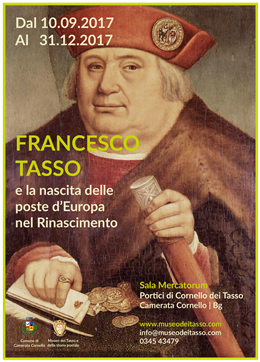 Dal 10 settembre al 31 dicembre 2017, nella Sala Mercatorum del Museo dei Tasso e della Storia postale (Portici di Cornello, Camerata Cornello -Bg-) è possibile visitare la mostra dedicata a Francesco Tasso.
