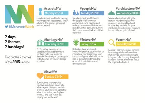 - 7 giorni, 7 temi, 7 hashtag da condividere per far conoscere il Museo su Twitter,