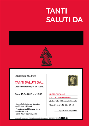 Domenica 15 aprile 2018, alle ore 15.00, il Museo dei Tasso e della Storia postale (via Cornello 22, Camerata Cornello -Bergamo-) organizza il laboratorio ludico “Tanti saluti da… crea una cartolina per chi vuoi tu!”.