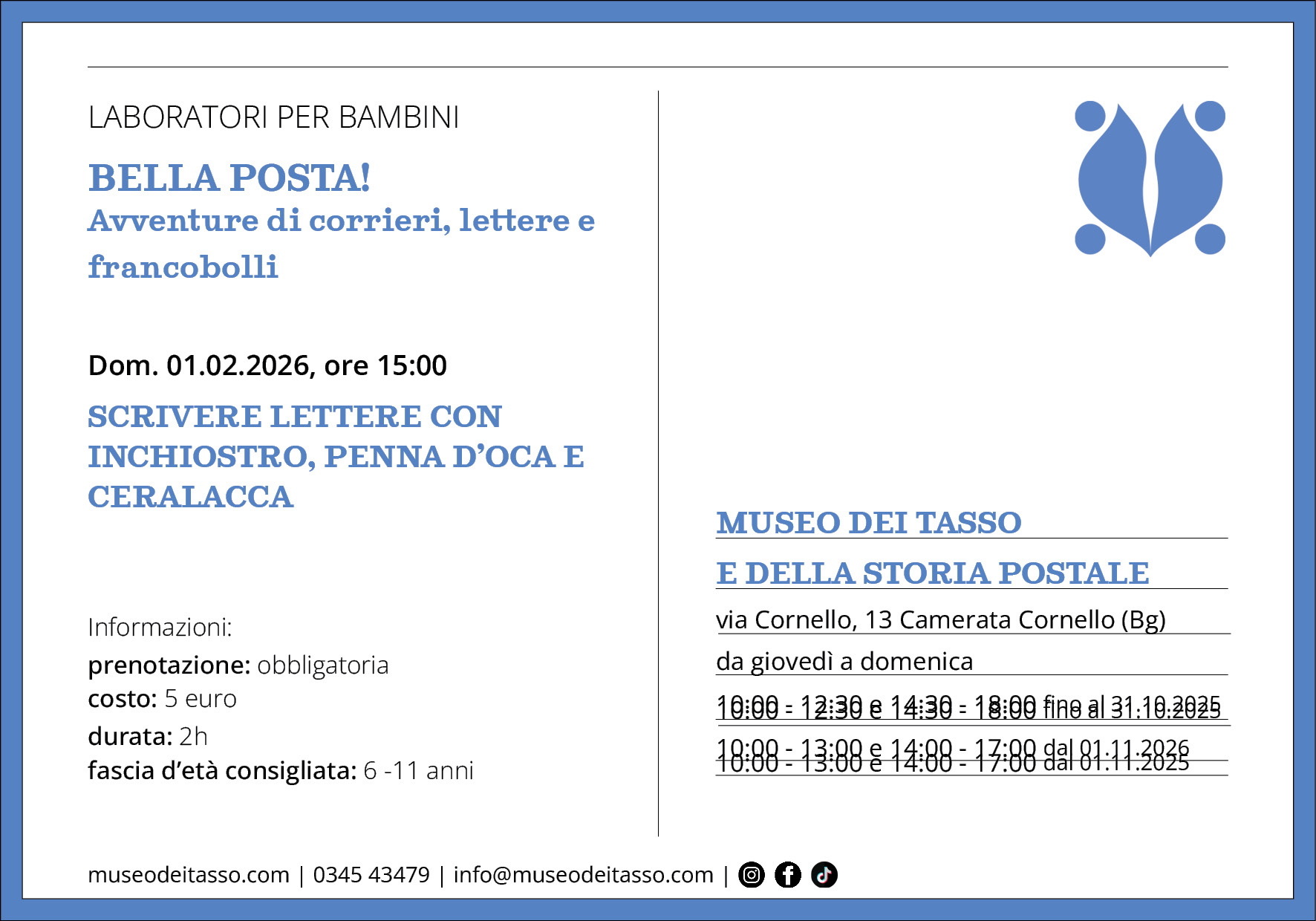 Domenica 1 febbraio 2026, alle 15:00, ti aspettiamo per “Scrivere lettere con penna d’oca, inchiostro e ceralacca”.